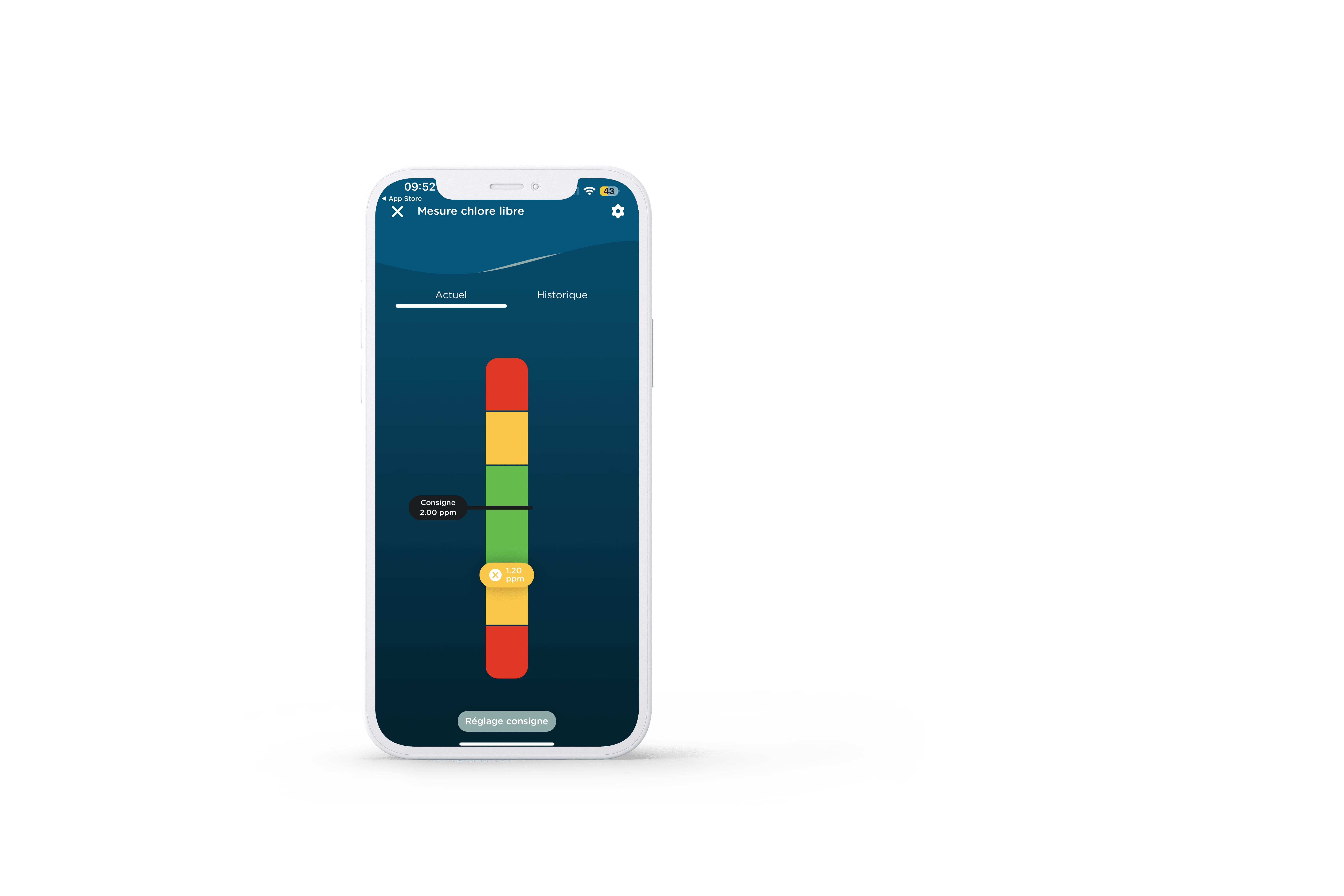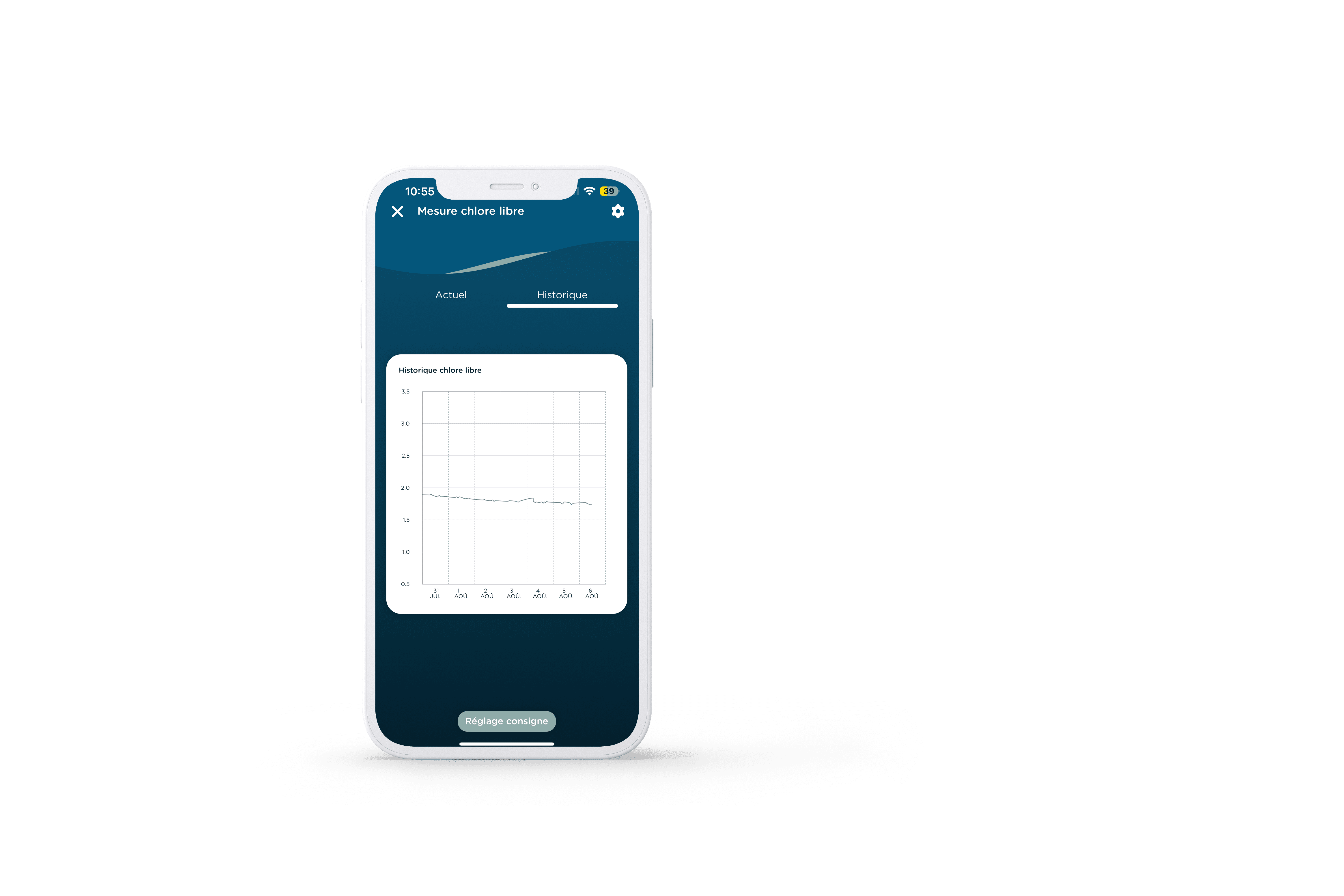 - Historical monitoring of free chlorine levels