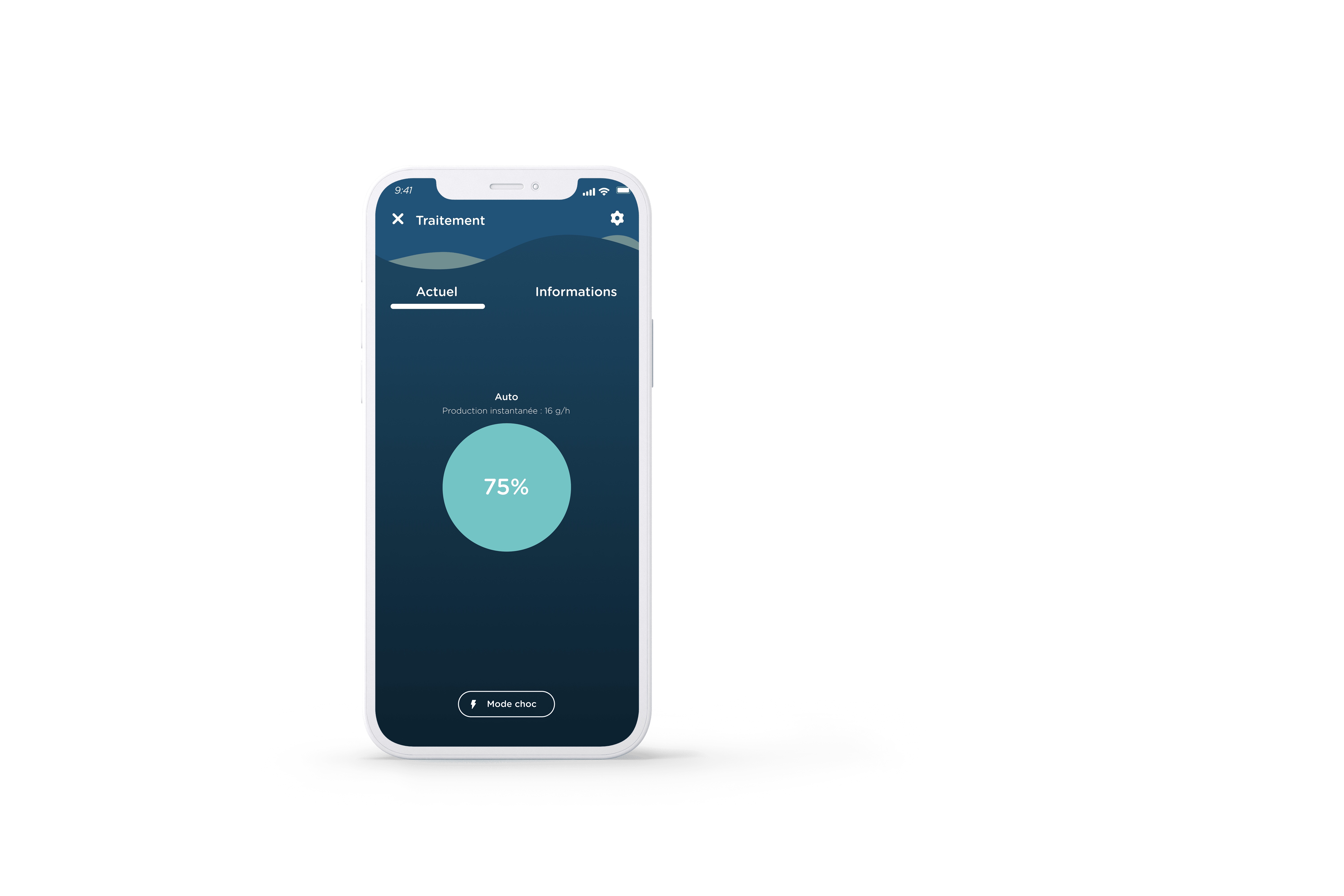 Limpido VP est un électrolyseur de sel pour piscine équipé d'une connexion Wi-Fi et Bluetooth intégrée. Vous pouvez ainsi gérer le traitement de l’eau à distance depuis votre appareil connecté en Wi-Fi, via l’application Vigipool.
